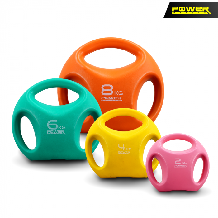 Kettlebell Easy Grip 3 Hole ที่จับ 3 ด้าน จาก POWER REFORM จับสองมือหรือมือเดียวก็ได้ ฐานแบนป้องกันการกลิ้ง วางตรงไหนก็สะดวก หุ้มพลาสติก PE ลดแรงกระแทก ไม่ทำให้พื้นเป็นรอย