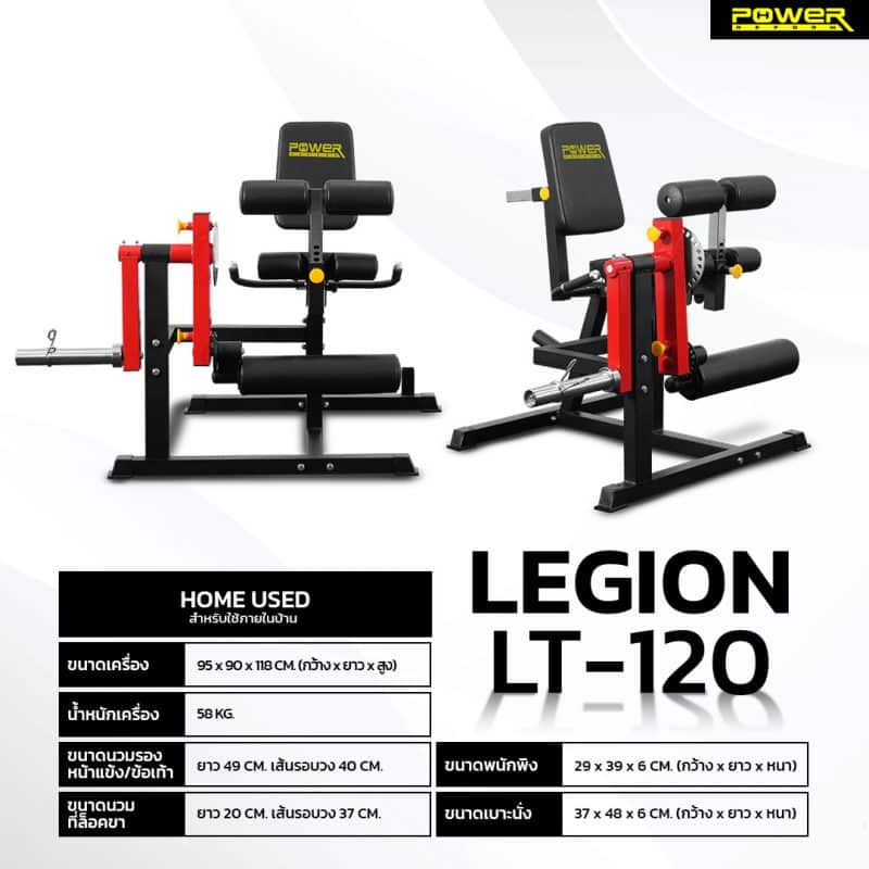 ก้าวไปอีกขั้นกับ LEGION PRO เครื่องบริหารกล้ามเนื้อที่รวม 3 ฟังก์ชันหลักไว้ในหนึ่งเดียว สามารถเล่นได้ทั้งท่า Leg Extension (ขาหน้า), Back Leg Extension (ขาหลัง) และ Abs Crunch (กล้ามเนื้อหน้าท้อง) โดดเด่นด้วยระบบปรับองศาที่ละเอียดและแม่นยำที่สุด โดยปรับจานแผ่นน้ำหนักได้ 24 ระดับ และที่ล็อคข้อเท้าปรับองศาได้ถึง 19 ระดับ รองรับน้ำหนักผู้ใช้สูงสุด 150 กก. และโหลดแผ่นน้ำหนักได้ถึง 100 กก. มั่นใจด้วยโครงสร้างเหล็กที่หนักและมั่นคงกว่าเดิม (58 กก.) พร้อมที่จัดเก็บแผ่นน้ำหนักในตัว ช่วยเปลี่ยนพื้นที่ในบ้านให้เป็นโซนฝึกซ้อมระดับมืออาชีพอย่างแท้จริง