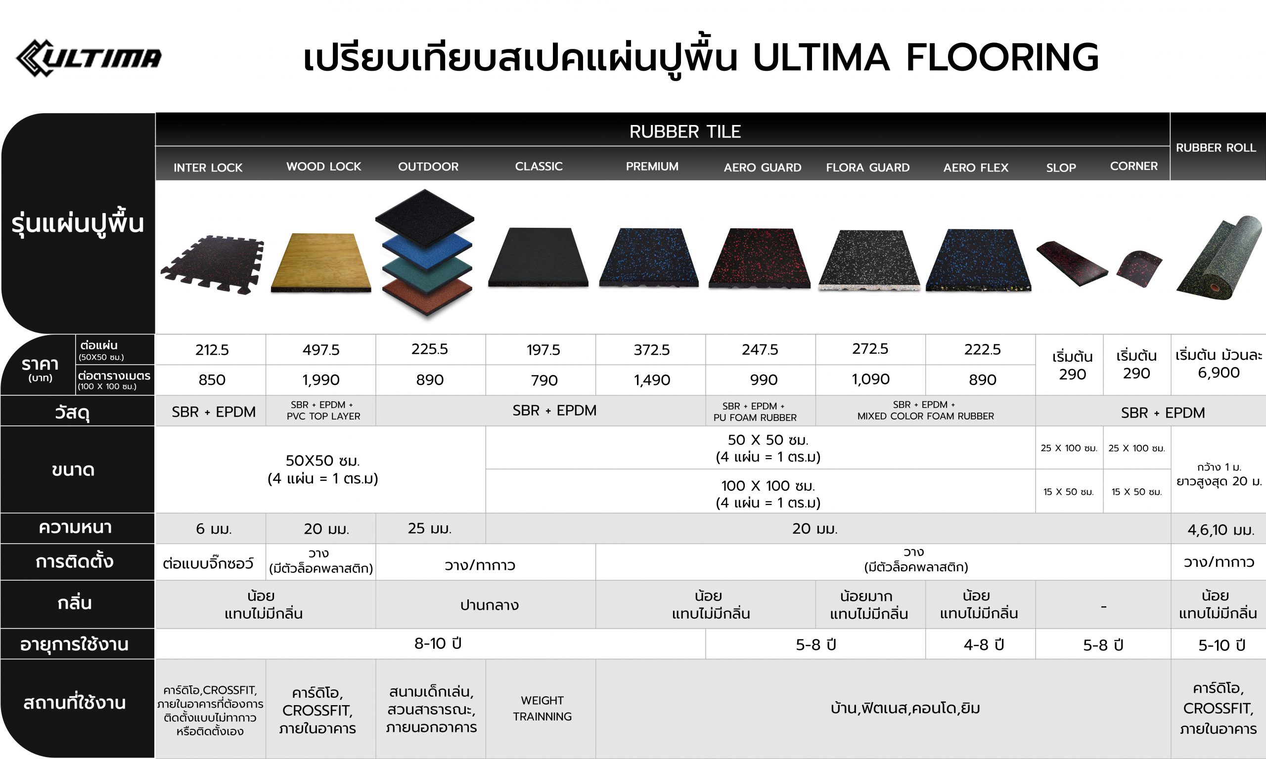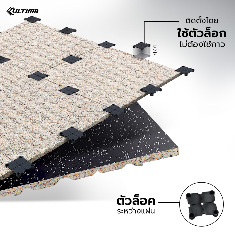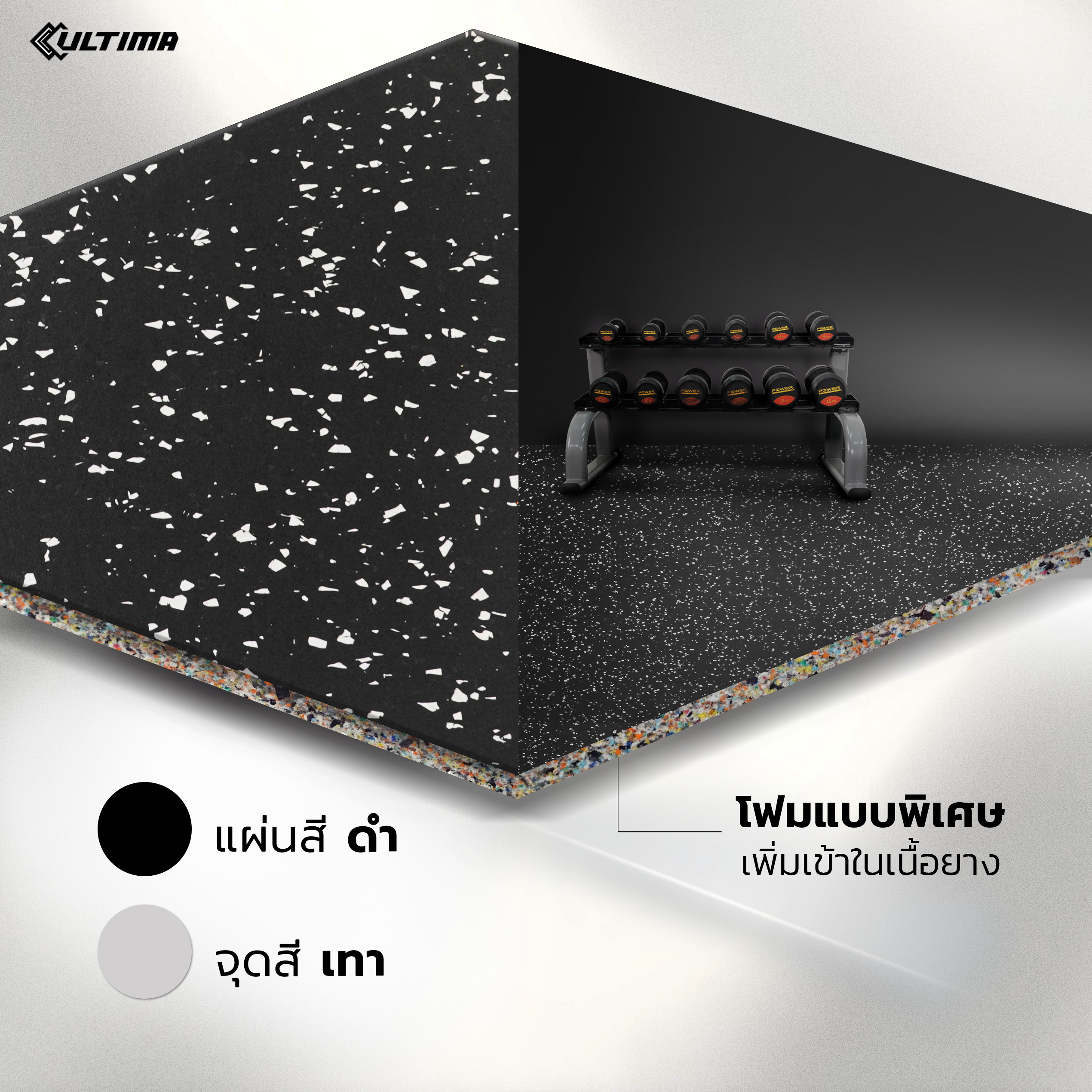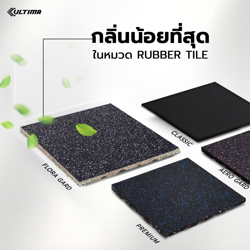 แผ่นปูพื้น Rubber Tile Flora Guard สีดำจุดเทา หนา 20 มม. กลิ่นน้อย ใช้สำหรับติดตั้งภายใน น้ำหนัก 10 กก./แผ่น ติดตั้งง่าย มีขนาดให้เลือก 2 ขนาด 50*50 ซม. และ 1 เมตร x 1 เมตร(100*100 ซม.)