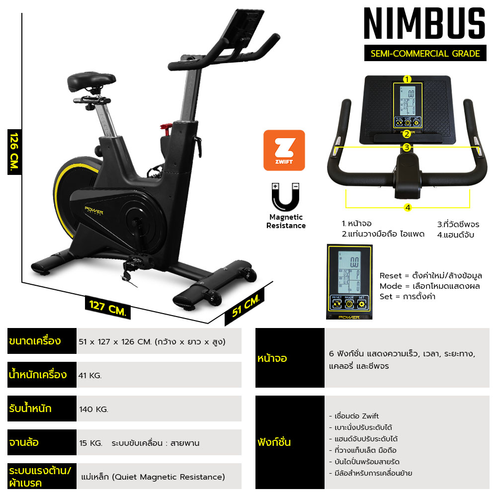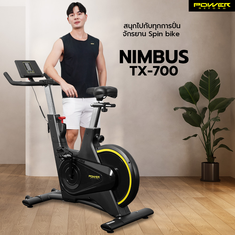 Nimbus TX-700 จักรยาน Spin Bike ระบบล้อหลัง Rear-Wheel Riding หน้าจอครบฟังก์ชัน พร้อมที่วางมือถือและแท็บเล็ต เชื่อมต่อ Zwift เพื่อการปั่นสมจริงทุกจังหวะ
