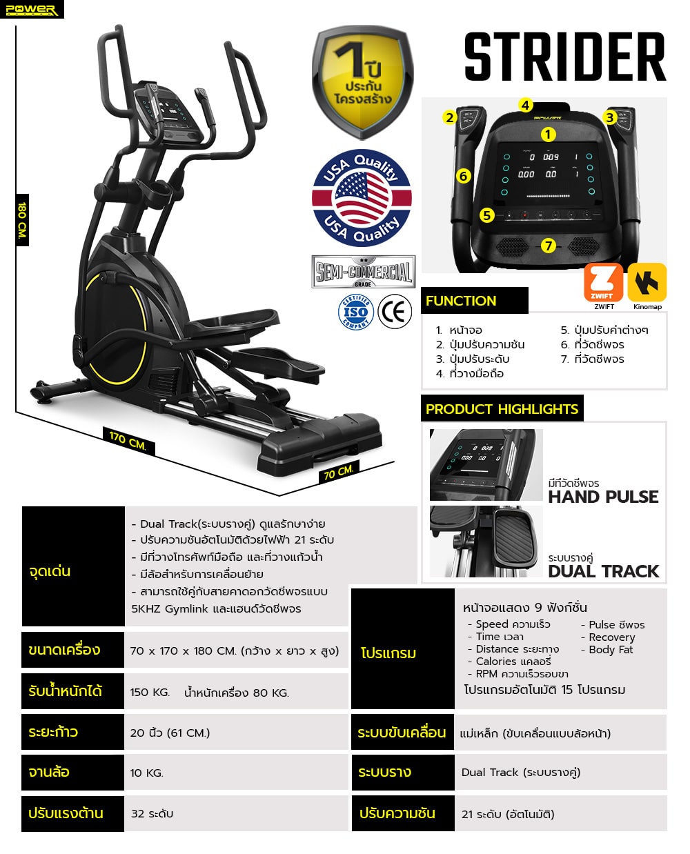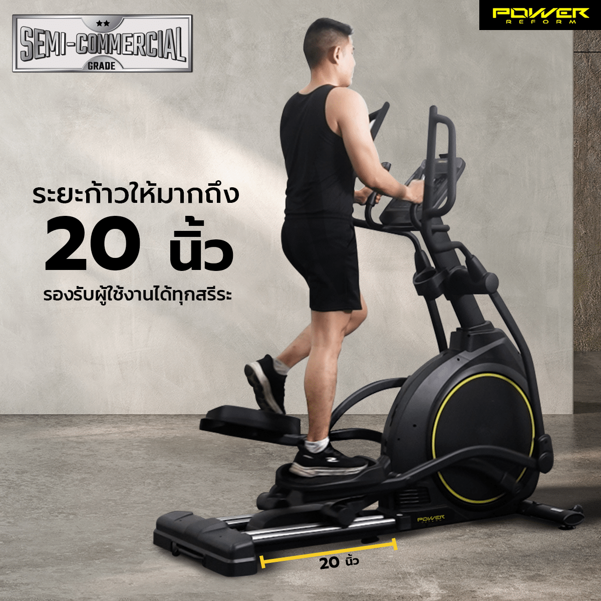 • ก้าวสนุก เข้าถึงทุกกล้ามเนื้อ: ระยะก้าว (Stride Length) กว้างถึง 20 นิ้ว ให้ความรู้สึกเป็นธรรมชาติเหมือนวิ่งในอากาศ ลดแรงกระแทกได้ดีเยี่ยม