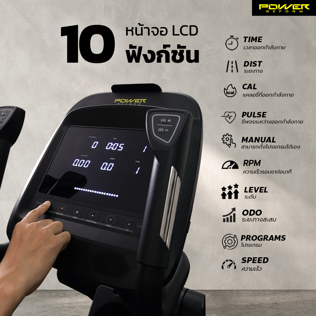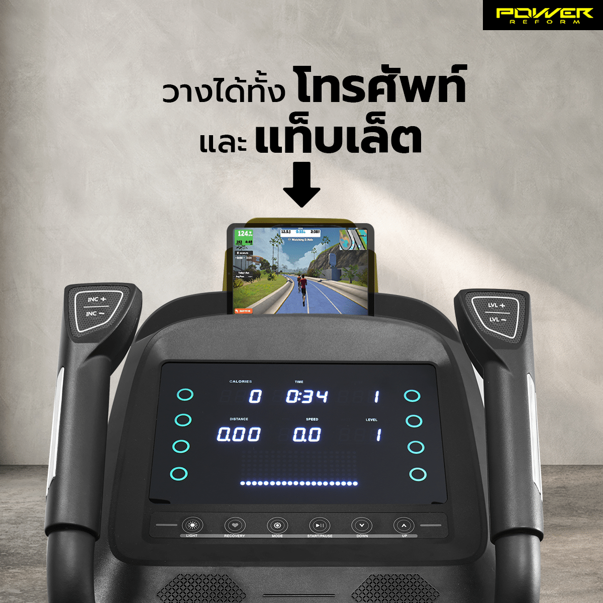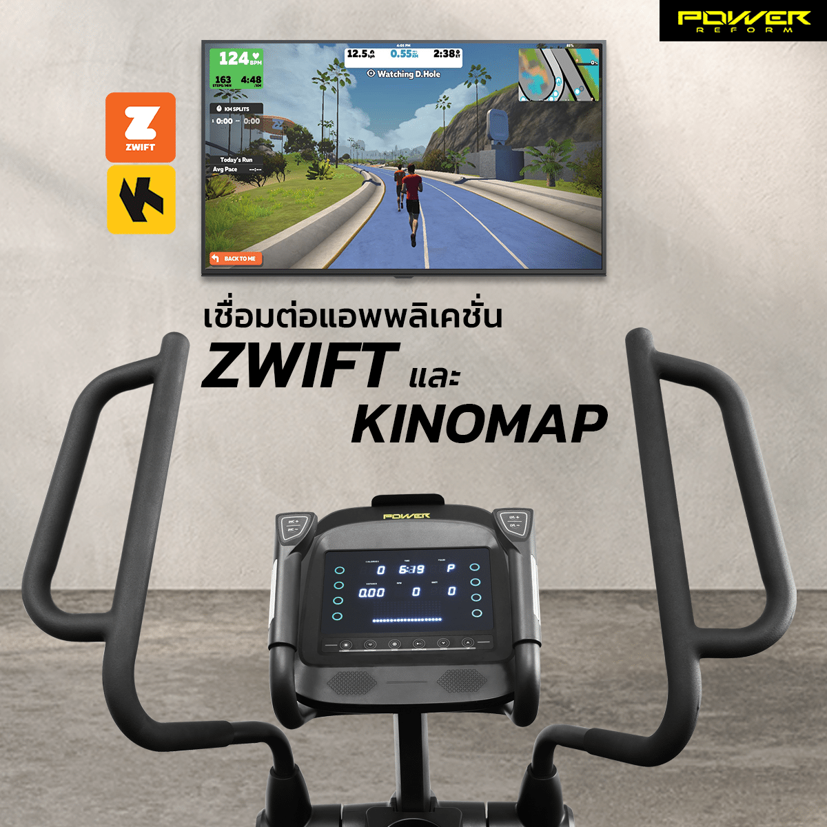 • สมาร์ทขั้นสุด: หน้าจอ 10 ฟังก์ชัน พร้อมที่วางมือถือ/แท็บเล็ต และรองรับการเชื่อมต่อแอป Zwift / Kinomap ให้การออกกำลังกายไม่น่าเบื่ออีกต่อไป