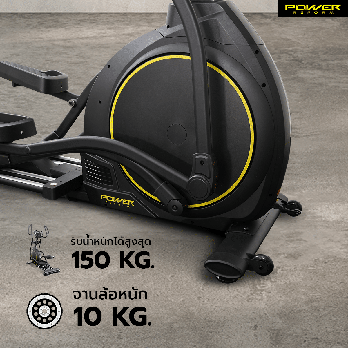• แกร่ง ทน นิ่ง: รองรับน้ำหนักผู้ใช้สูงสุด 150 กก. ด้วยระบบรางคู่และจานล้อ 10 กก. มั่นใจทุกจังหวะการปั่น ไม่มีโยกคลอน